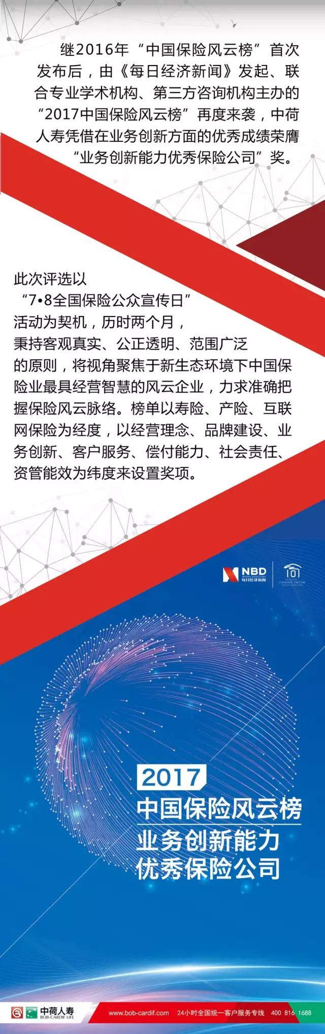 中荷人壽榮獲2017年度“業(yè)務創(chuàng)新能力優(yōu)秀保險公司”獎