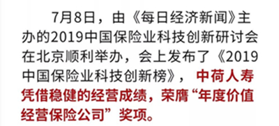 中荷人壽榮獲“年度價(jià)值經(jīng)營保險(xiǎn)公司”獎(jiǎng)