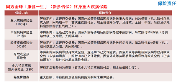 同方全球人壽康健一生(新多倍保)終生重大疾病保險(xiǎn)!