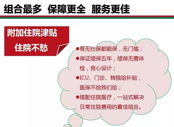 2、還可附加投保人重疾身故豁免、新住院津貼(含ICU特殊津貼、轉(zhuǎn)院津貼)、住院醫(yī)療(醫(yī)保內(nèi)外均可報銷)、意外身故、意外醫(yī)療 保障超全。