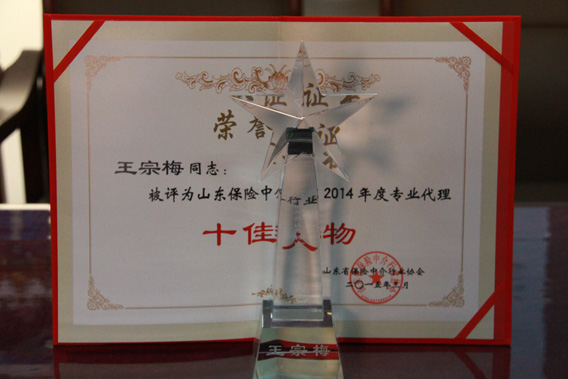本次全省保險(xiǎn)中介代理“雙先表彰大會(huì)”也對中介公司的優(yōu)秀代理人進(jìn)行了評選表彰,其中山東四方華邦保險(xiǎn)代理公司濰坊分公司的營業(yè)部經(jīng)理王宗梅憑借優(yōu)秀的個(gè)人業(yè)績、團(tuán)隊(duì)業(yè)績,以及多年來對公司做出的貢獻(xiàn),經(jīng)機(jī)構(gòu)推薦和公司選拔報(bào)送,被榮幸的評為山東省保險(xiǎn)中介行業(yè)2014年度【十佳人物】。