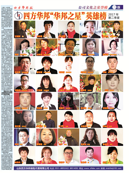 2017年一季度“華邦之星”榮譽榜