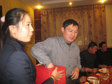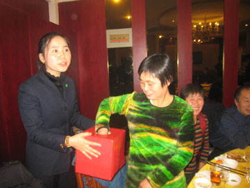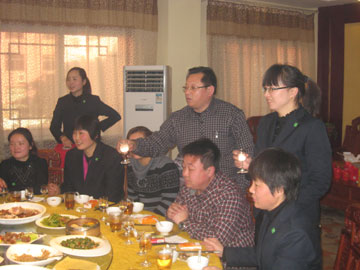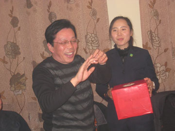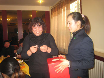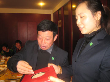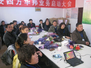 2013年12月28日上午,泰安分公司在職場內(nèi)舉辦了年度、月度績優(yōu)人員表彰會。中午王明剛總舉辦了隆重的英雄宴。宴會上增加了抓獎活動,大獎是平板電腦。表彰會和宴會的氛圍非?;钴S。