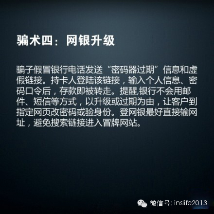 4、收到網(wǎng)銀升級、密碼器升級等可疑信息請向銀行官方客服號或營業(yè)廳詢問核實,以免受騙。